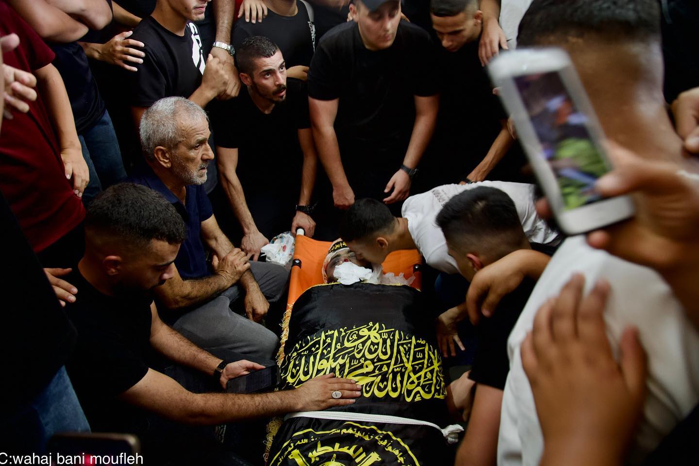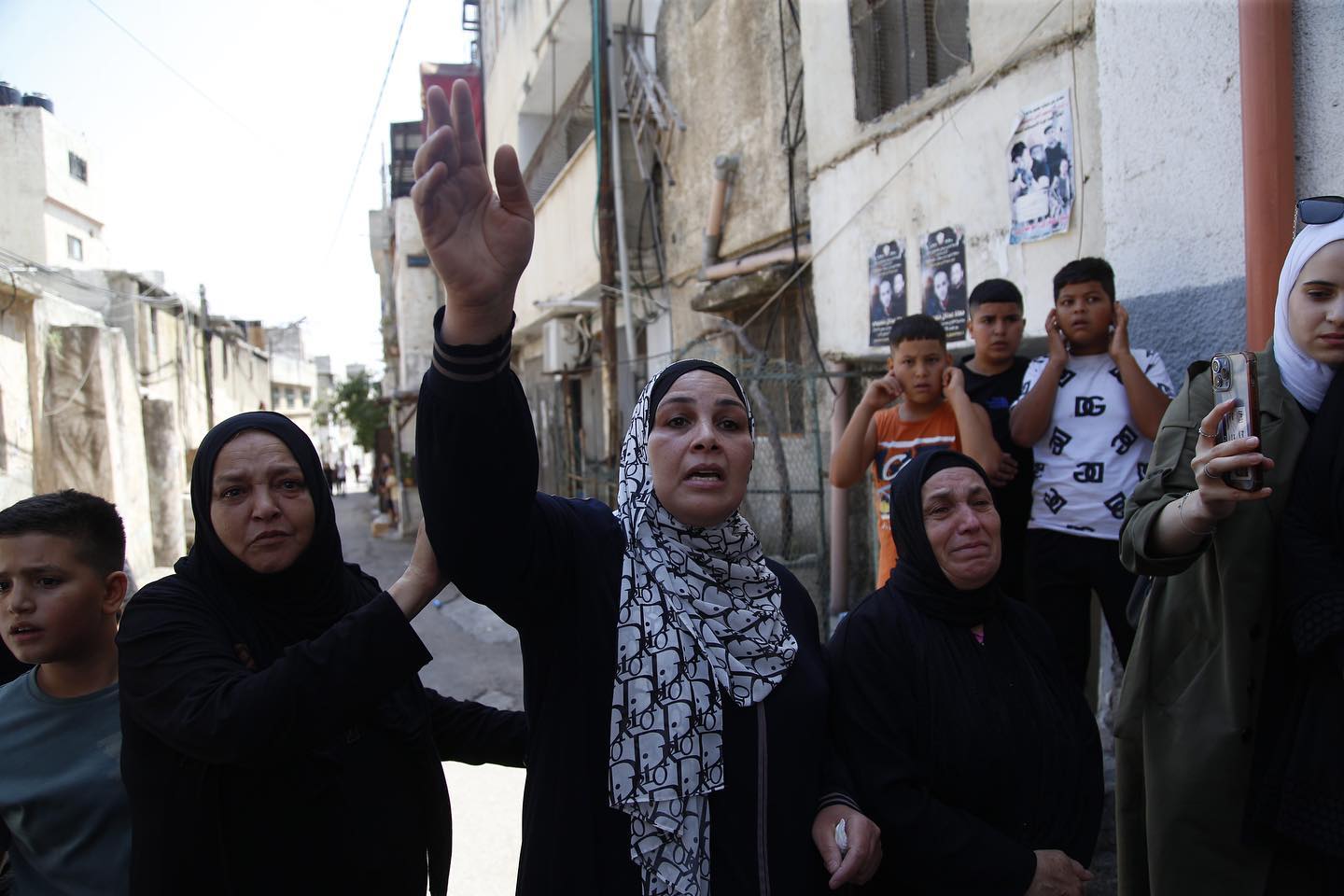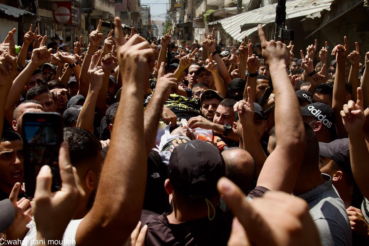 The funeral of martyr Jamal Sa'udi in Balata Refugee Camp, Nablus, on August 22, 2024. Sa'udi succumbed to his injuries days after an Israeli drone strike inside the camp. Established in 1950, Balata Camp is the largest Palestinian refugee camp in the West Bank, located east of Nablus. The camp's residents endure harsh living conditions, high population density, and continuous targeting by Israeli forces.