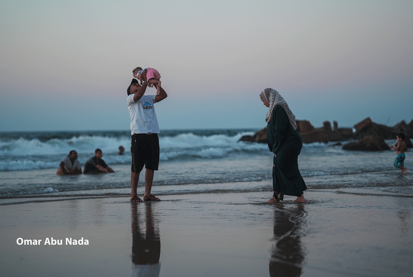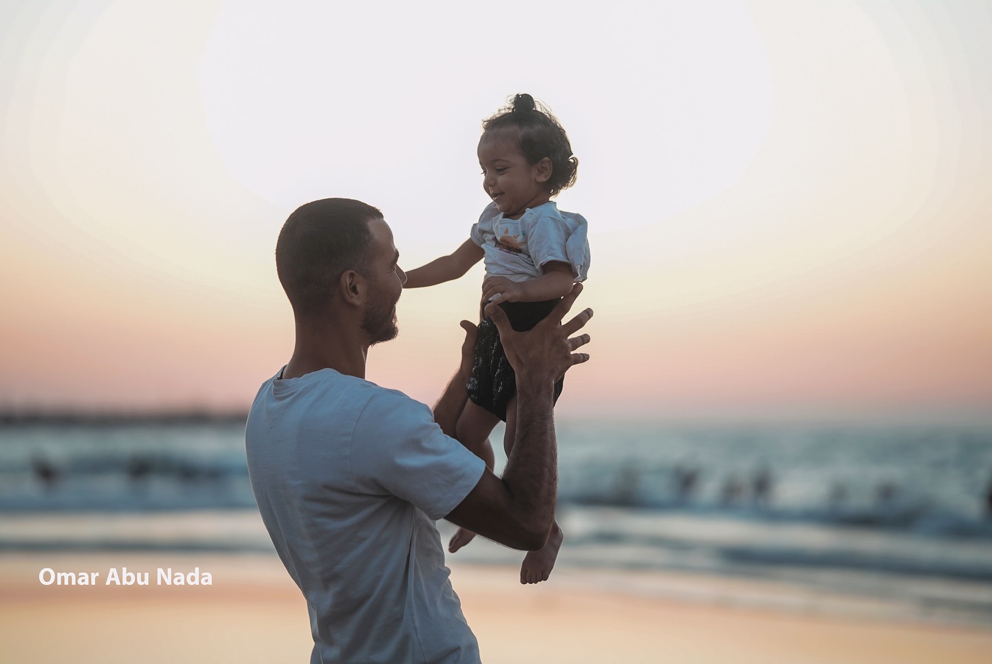 أب و ابنته على شاطئ البحر بعد مرور أكثر من 322 يوم على الحرب Father and daughter on the beach after more than 322 days after the war