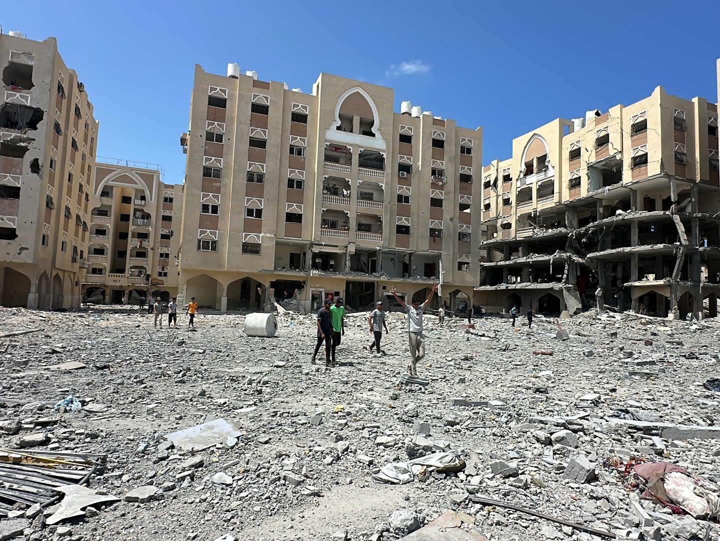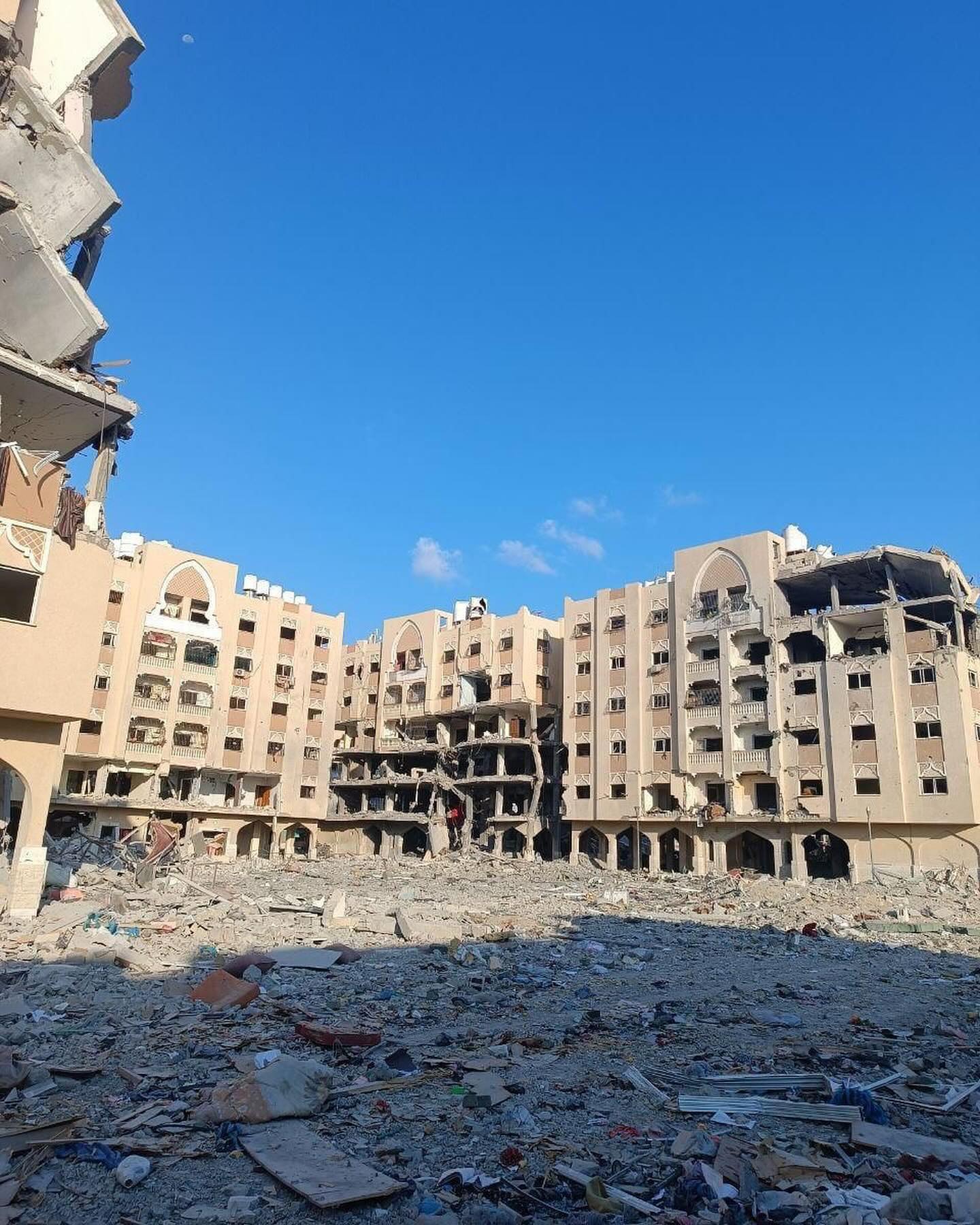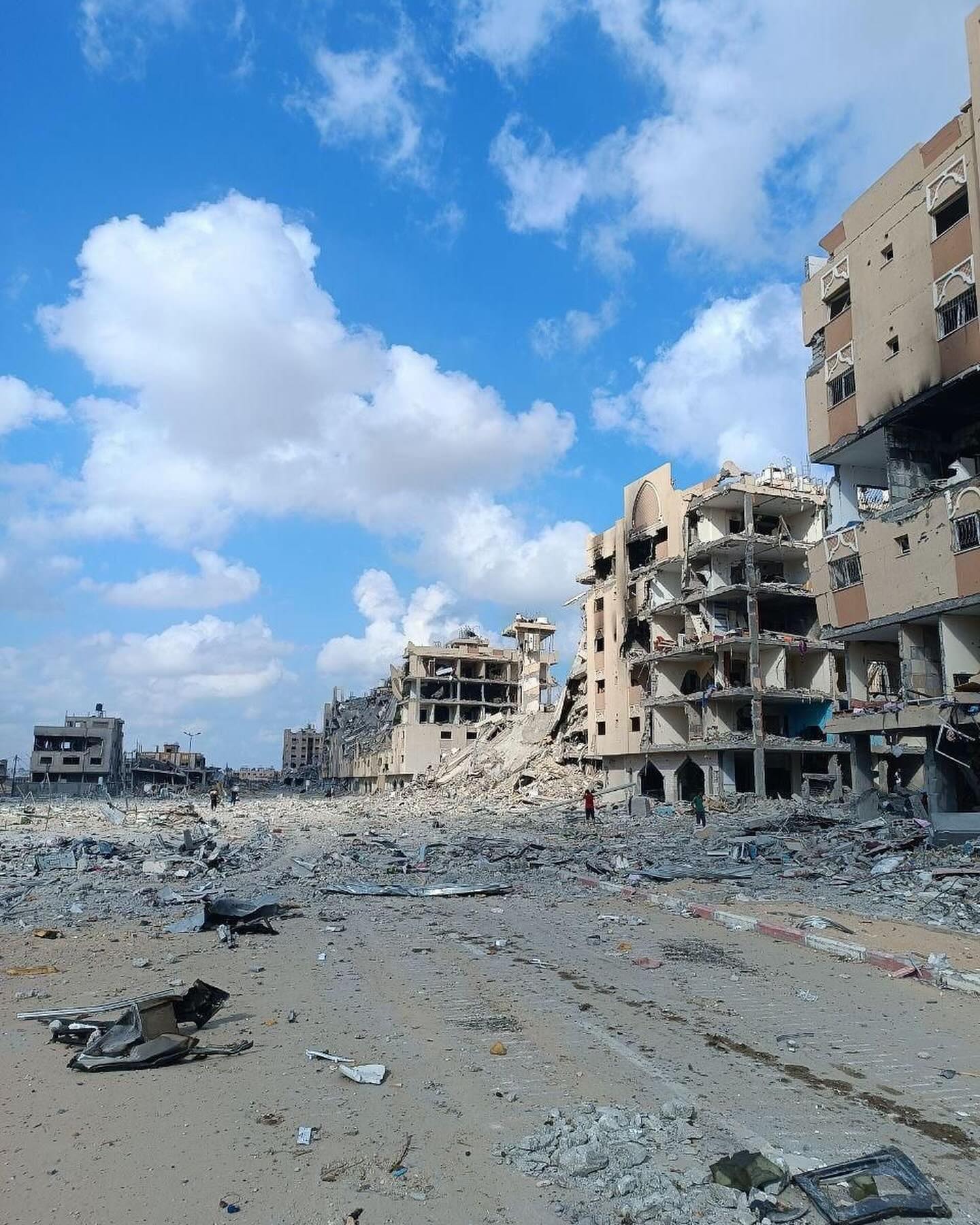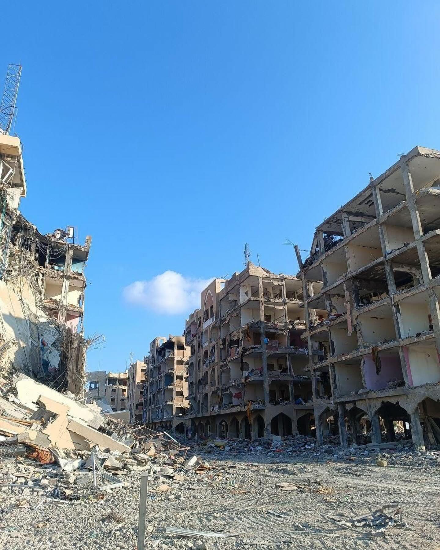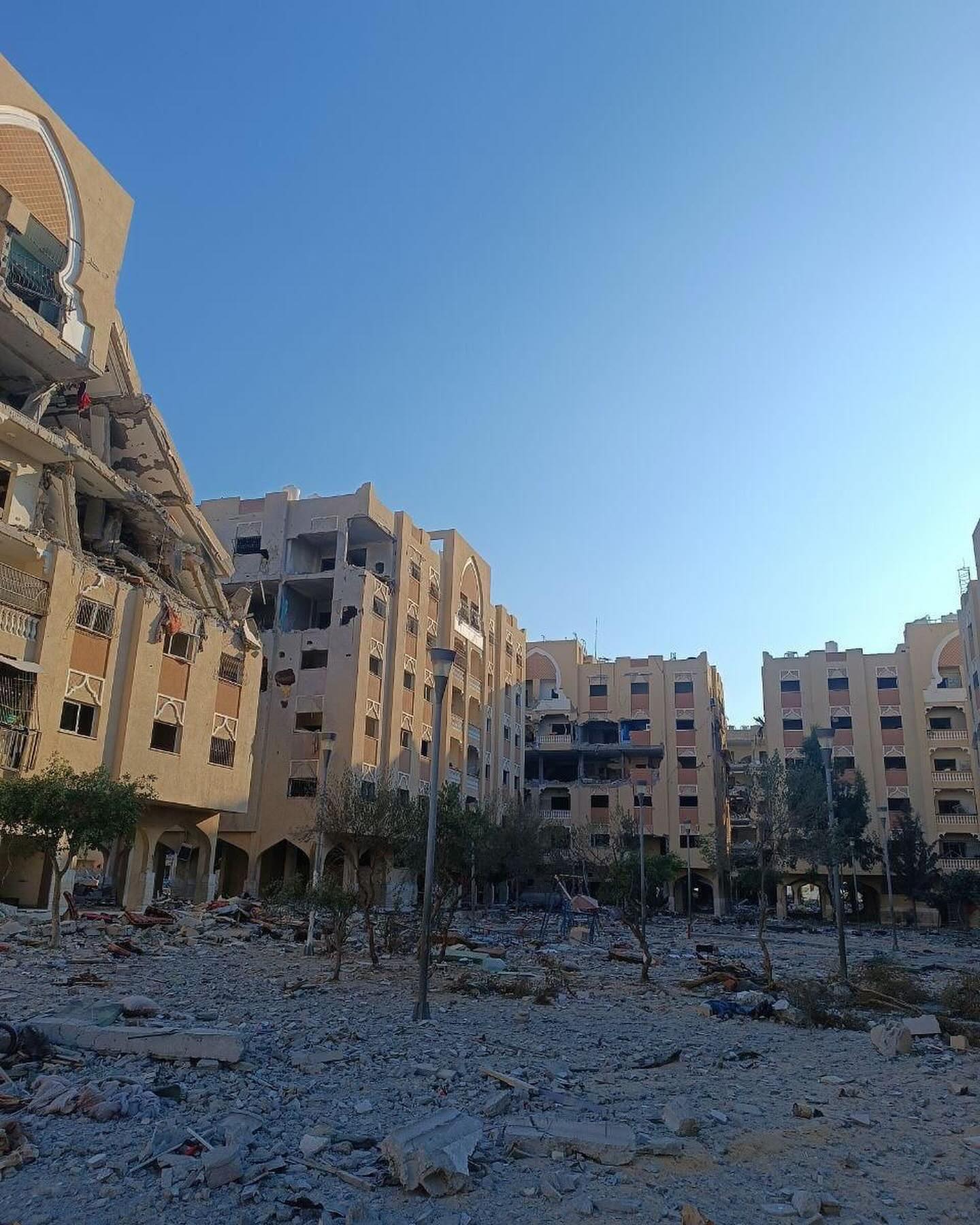 The destruction caused by the Israeli occupation forces in Hamad residential town in Khan Younis, southern Gaza Strip. By @hassan_eslaih الدمار الذي خلفه الاحتلال في مدينة حمد السكنية في خانيونس جنوب قطاع غزة