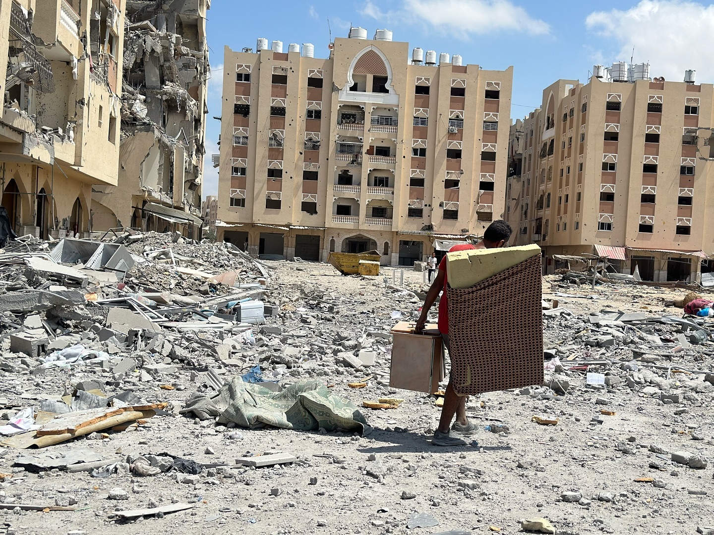 A barefoot little girl struggles to transport a gallon of water for her family amongst the rubble in the Shate’ refugee camp, north of Gaza. By @moazhosni طفلة حافية القدمين تكافح لنقل المياه لعائلتها وسط الركام في مخيم الشاطئ في غزة