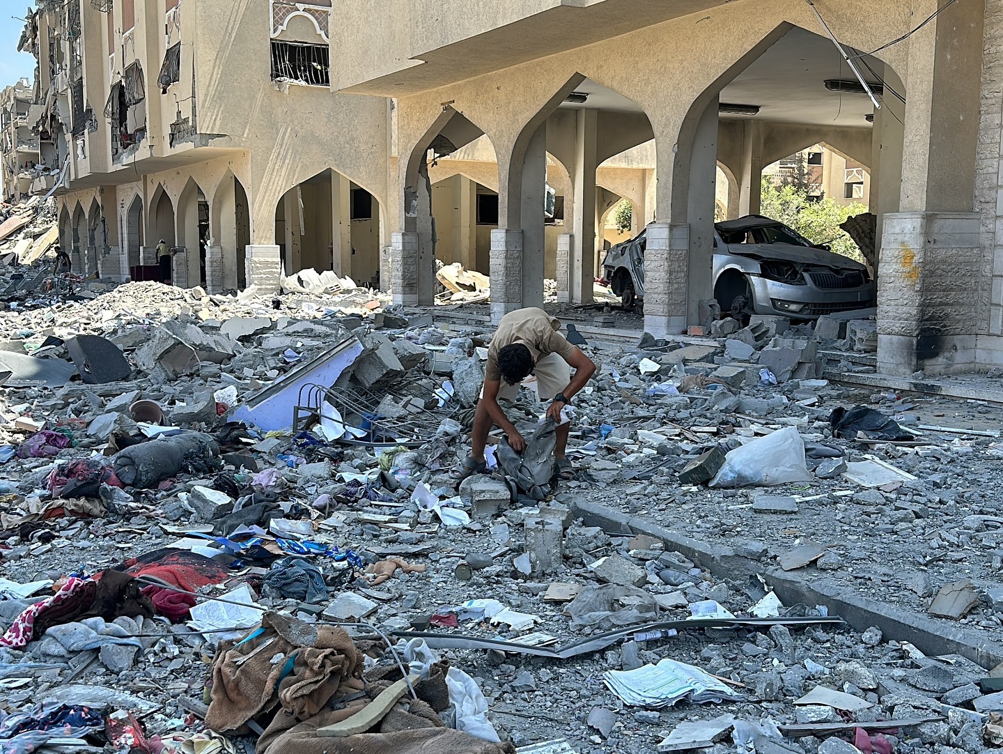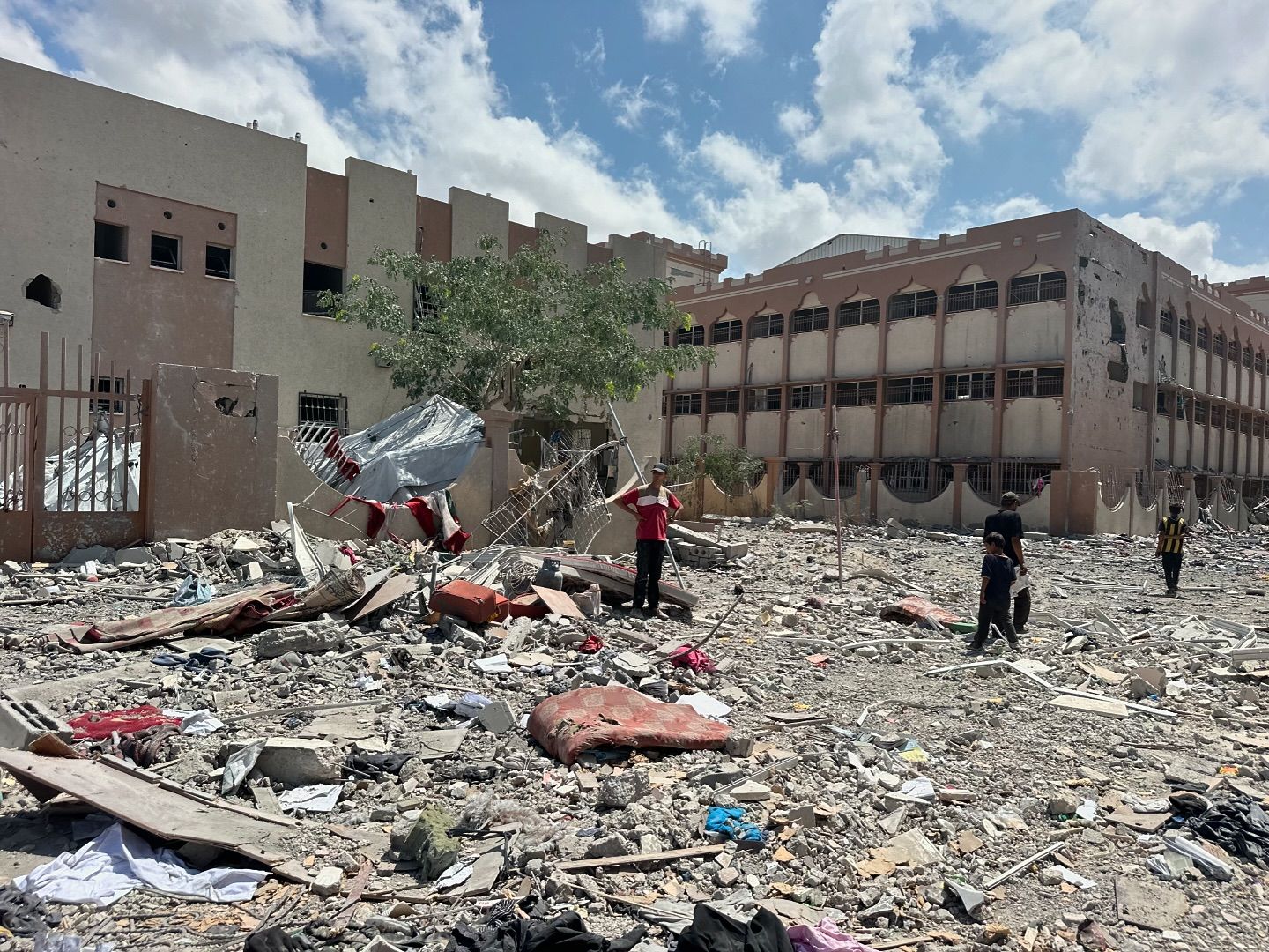 Displaced Palestinians live in a school despite the damage caused by the Israeli occupation forces during the aggression against Gaza. By @mahmoudsabbah2 عائلات نازحة تعيش في مدرسة بالرغم من الدمار الذي حلها نتيجة العدوان