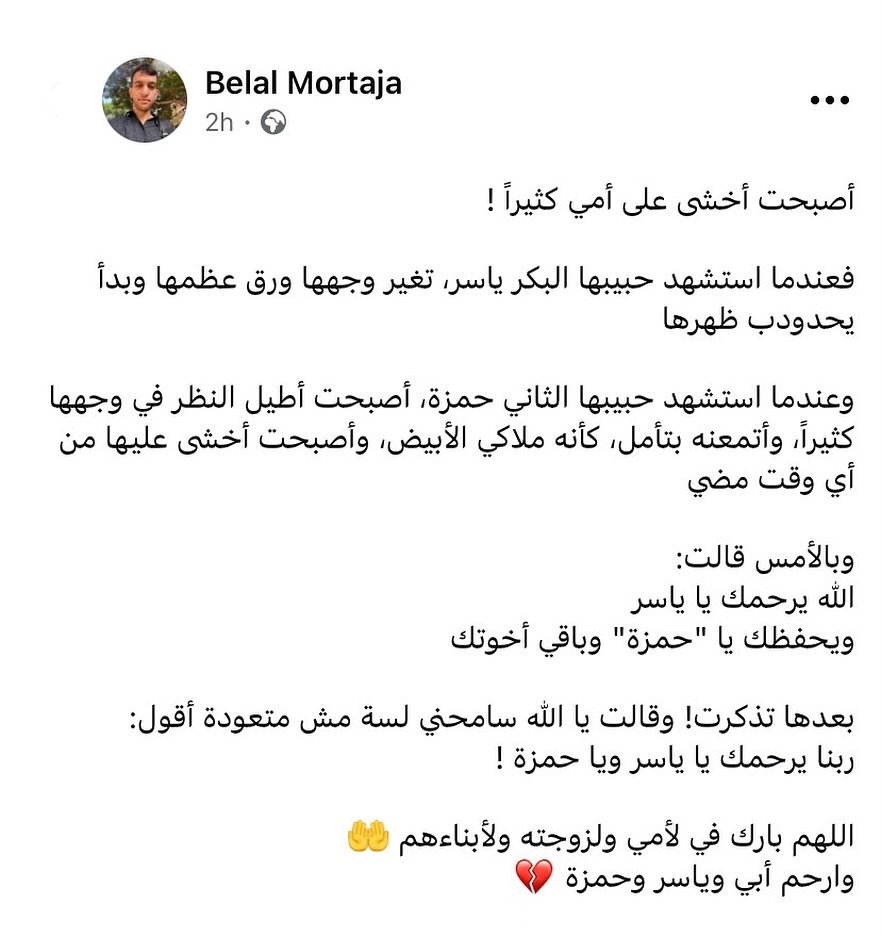 أصبحت أخشى على أمي كثيراً 💔 اللهم ارحم حمزة وياسر وأبي واحفظ أمي 🤲
