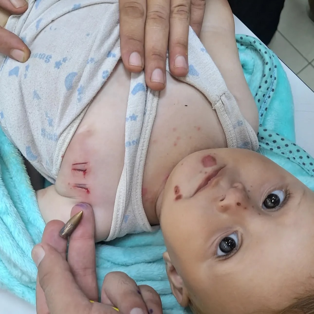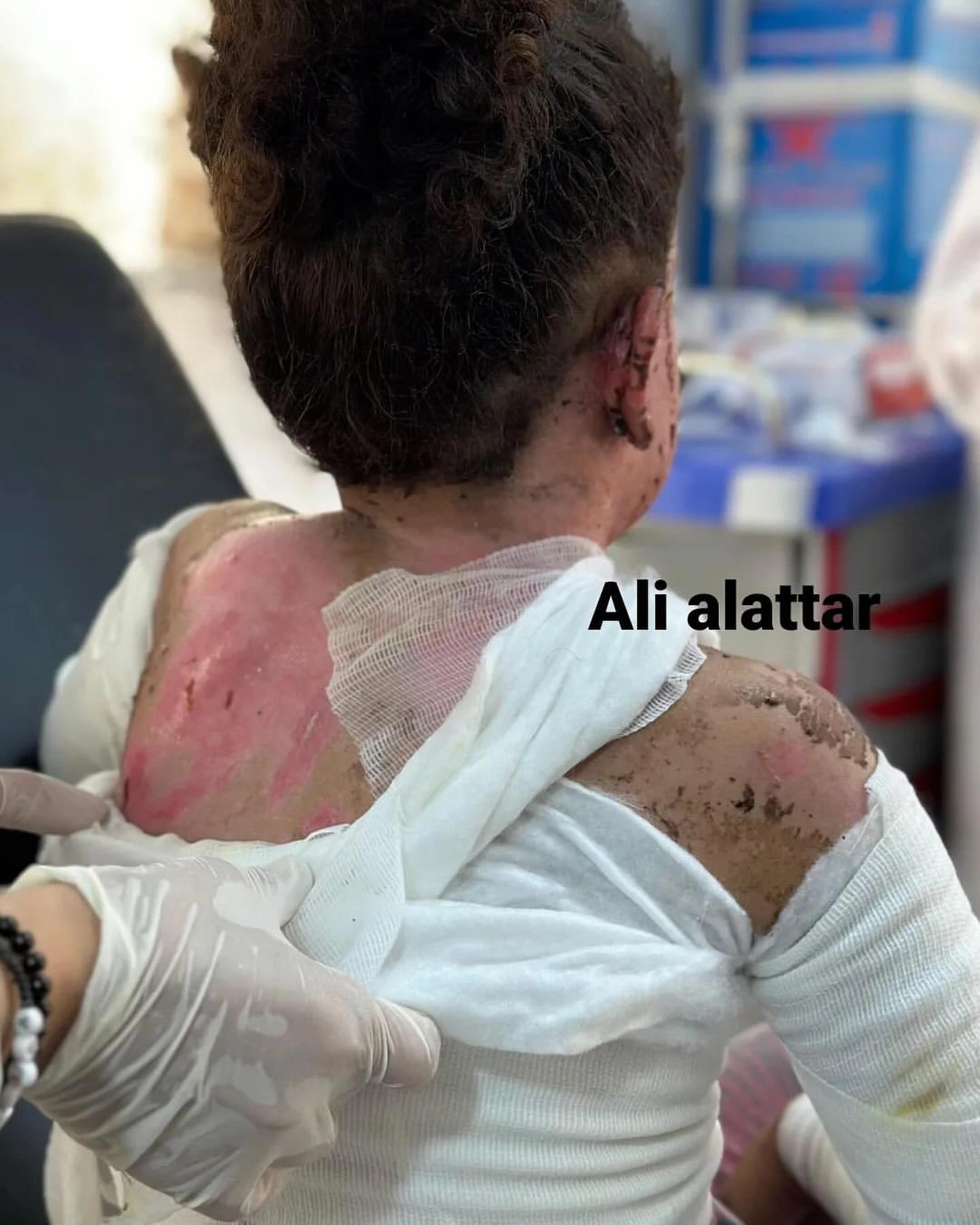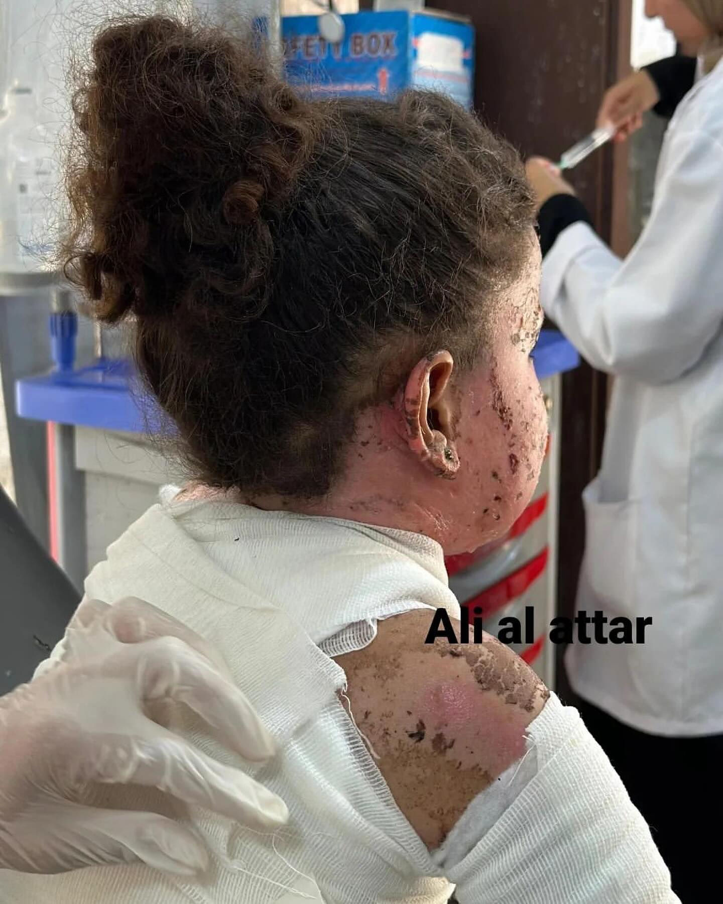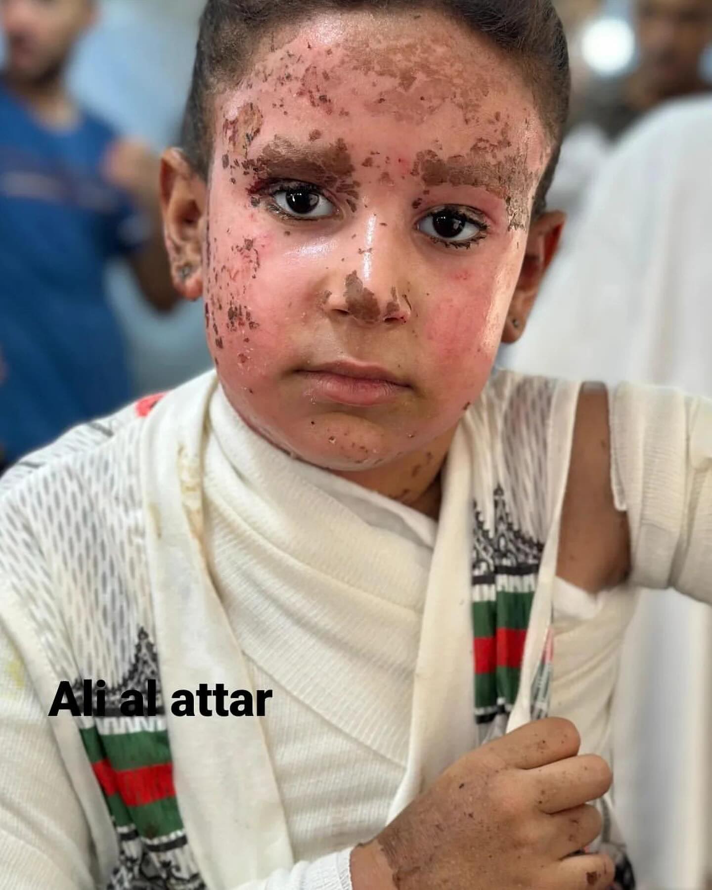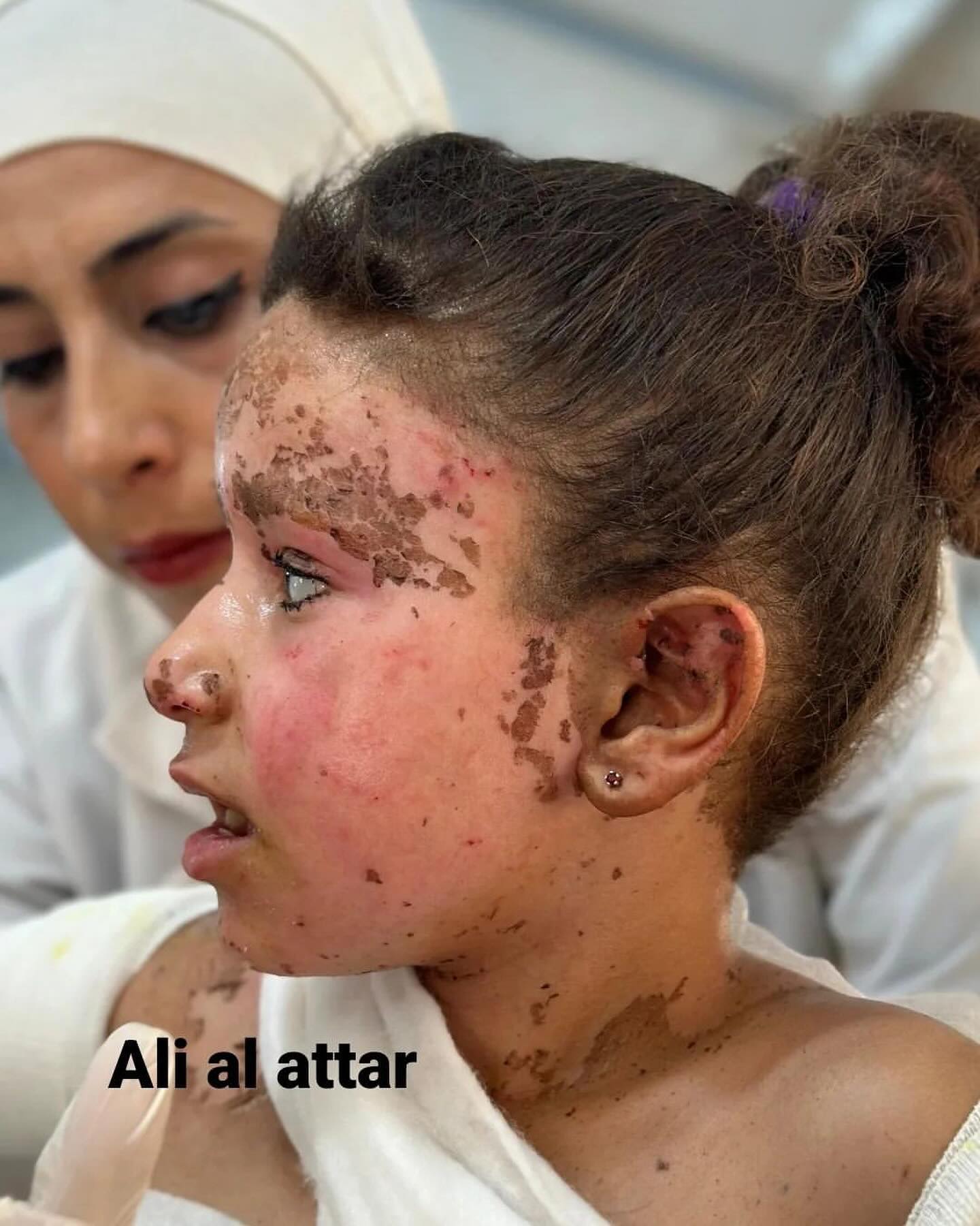 An injured little girl smiles despite her pain and injuries. By @hani.aburezeq طفلة مصابة تبتسم رغم الألم و الإصابة