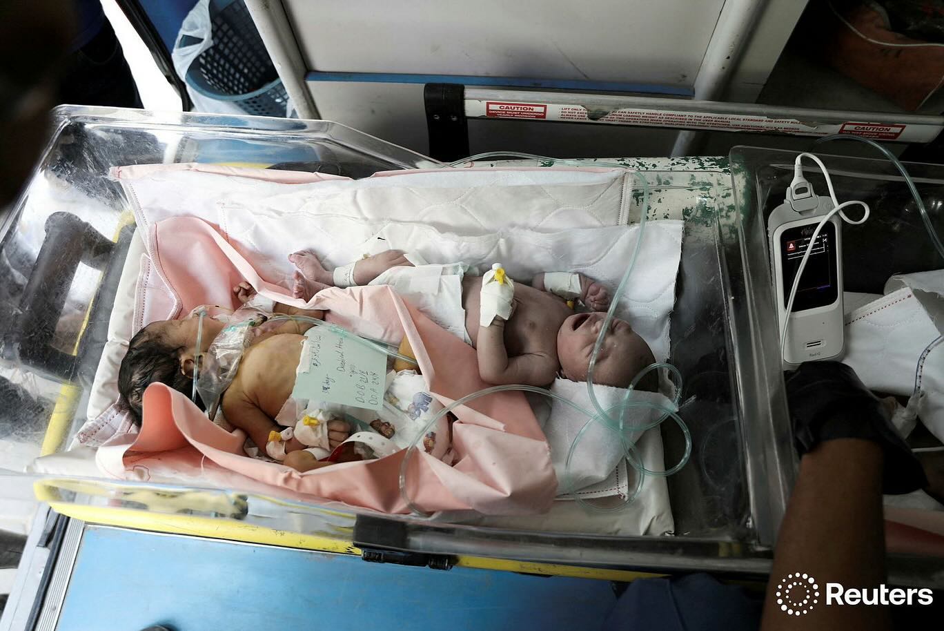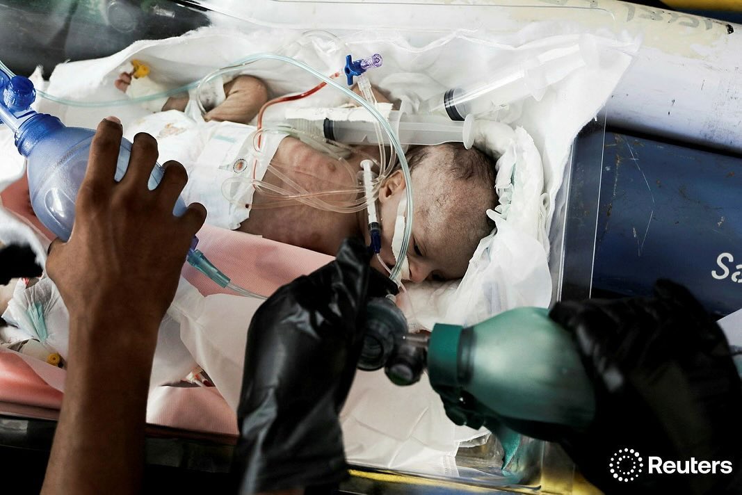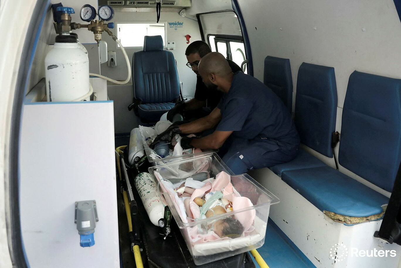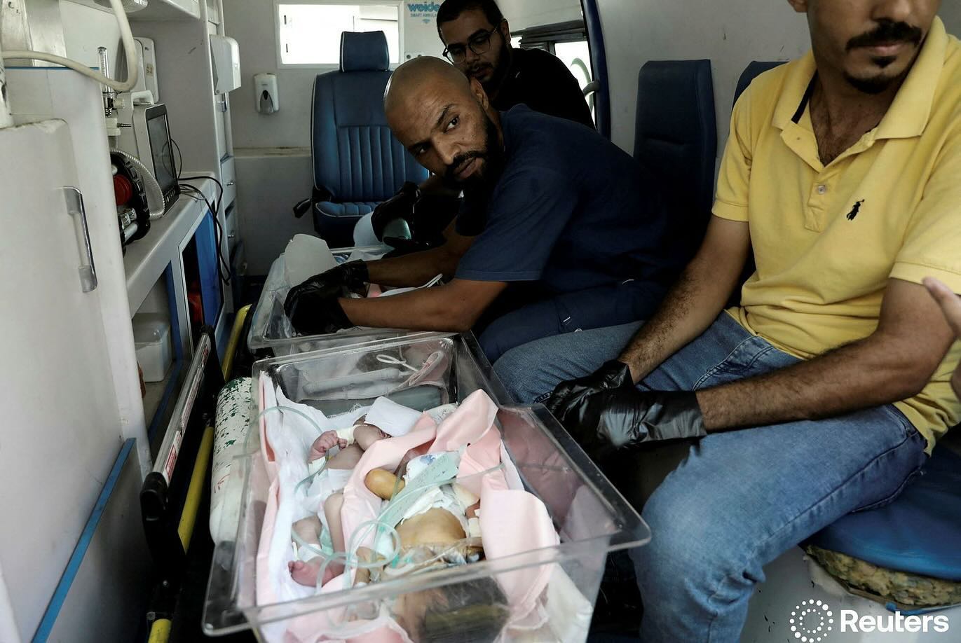 Premature babies are evacuated from Al-Aqsa Hospital after #Israel issued evacuation orders for areas around the medical facility in Deir el-Balah. . The Reuters news agency reported that the babies would be transported to the Nasser Hospital in southern Khan Younis. 📸 Abd elhkeem Khaled, @reuters