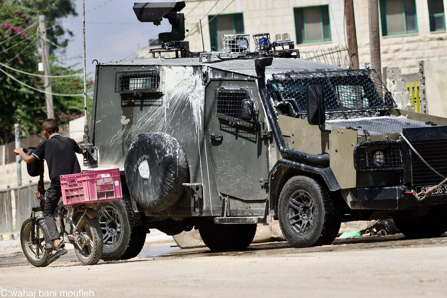 The Israeli occupation forces destroy a Palestinian owned vehicle in Al Sa’deyah neighborhood in Jenin. مشاهد توثق لحظة تحطيم مركبة فلسطينية من قبل آليات الاحتلال المقتحمة في حارة السعدية بجنين.