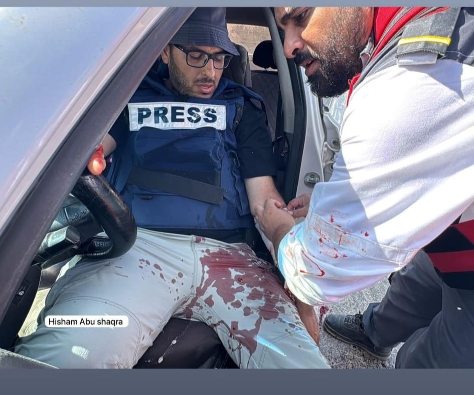 A Palestinian journalist was shot by the Israeli occupation forces in Kafr Dan village near Jenin. By @louyalsaeed اصابة صحفي برصاص الاحتلال في كفردان قرب جنين