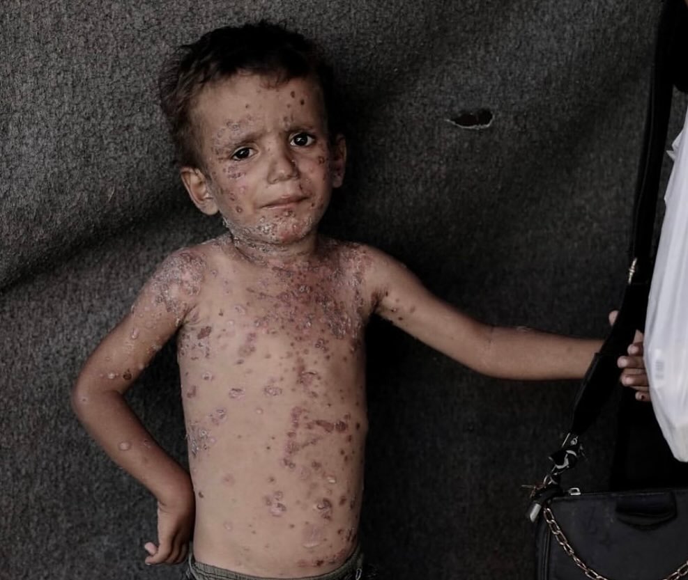 Skin diseases are widely spreading among children in Jabalia as there is a severe lack of hygiene materials and no medical treatment for it. By @moath_kahlout انتشار الأمراض الجلدية بين الأطفال في قطاع غزة مع استمرار العدوان وانعدام مواد التنظيف و الأدوية