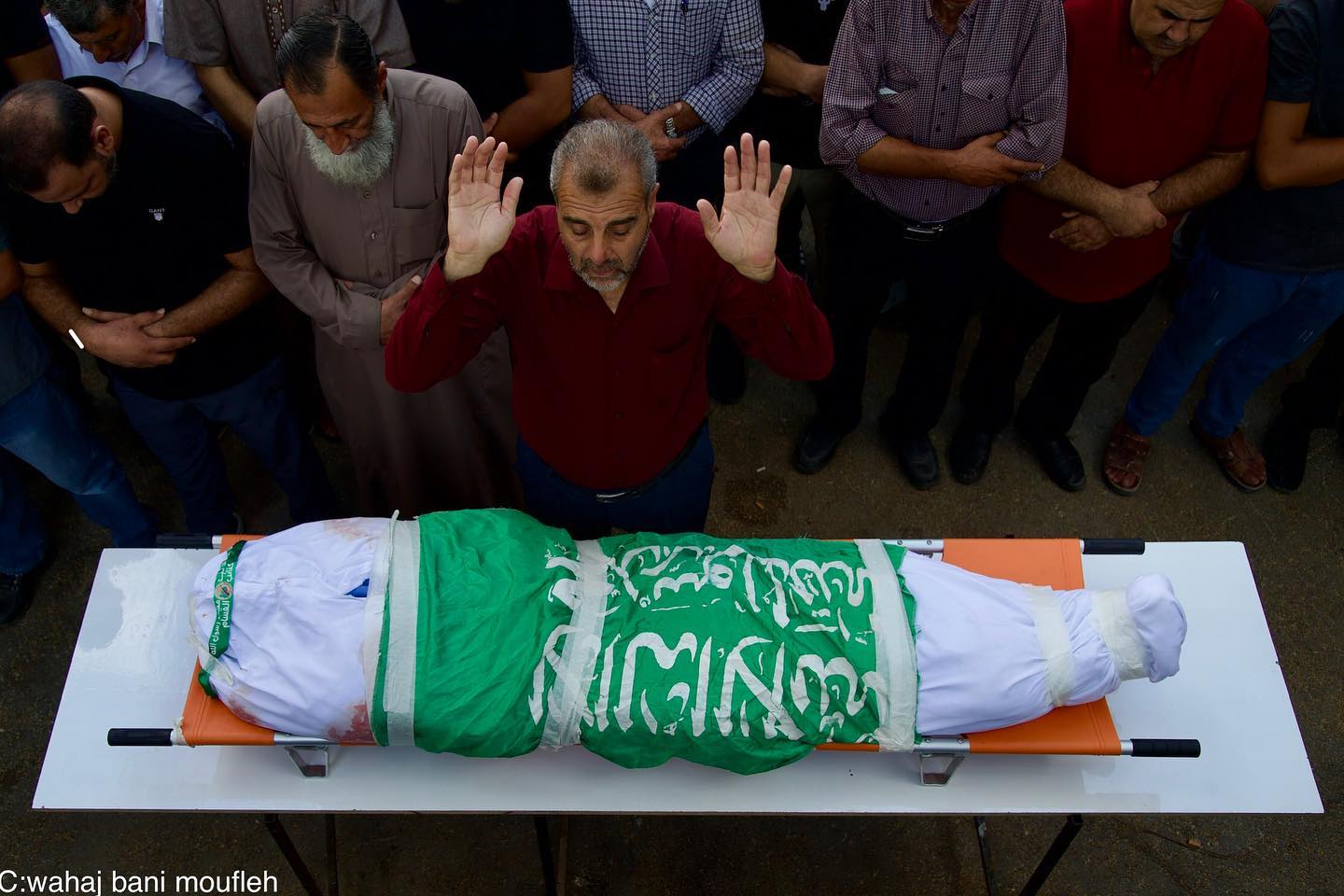 أسير فلسطيني محرر من القدس مُبعد الى غزة منذ العام 2015 يرفع علم فلسطين فوق أنقاض منزله المدمر من ابراج القسطل التي دمرت بشكل كامل هذه الابراج خلال العملية العسكرية شرق دير البلح خلال الايام القليلة الماضية
