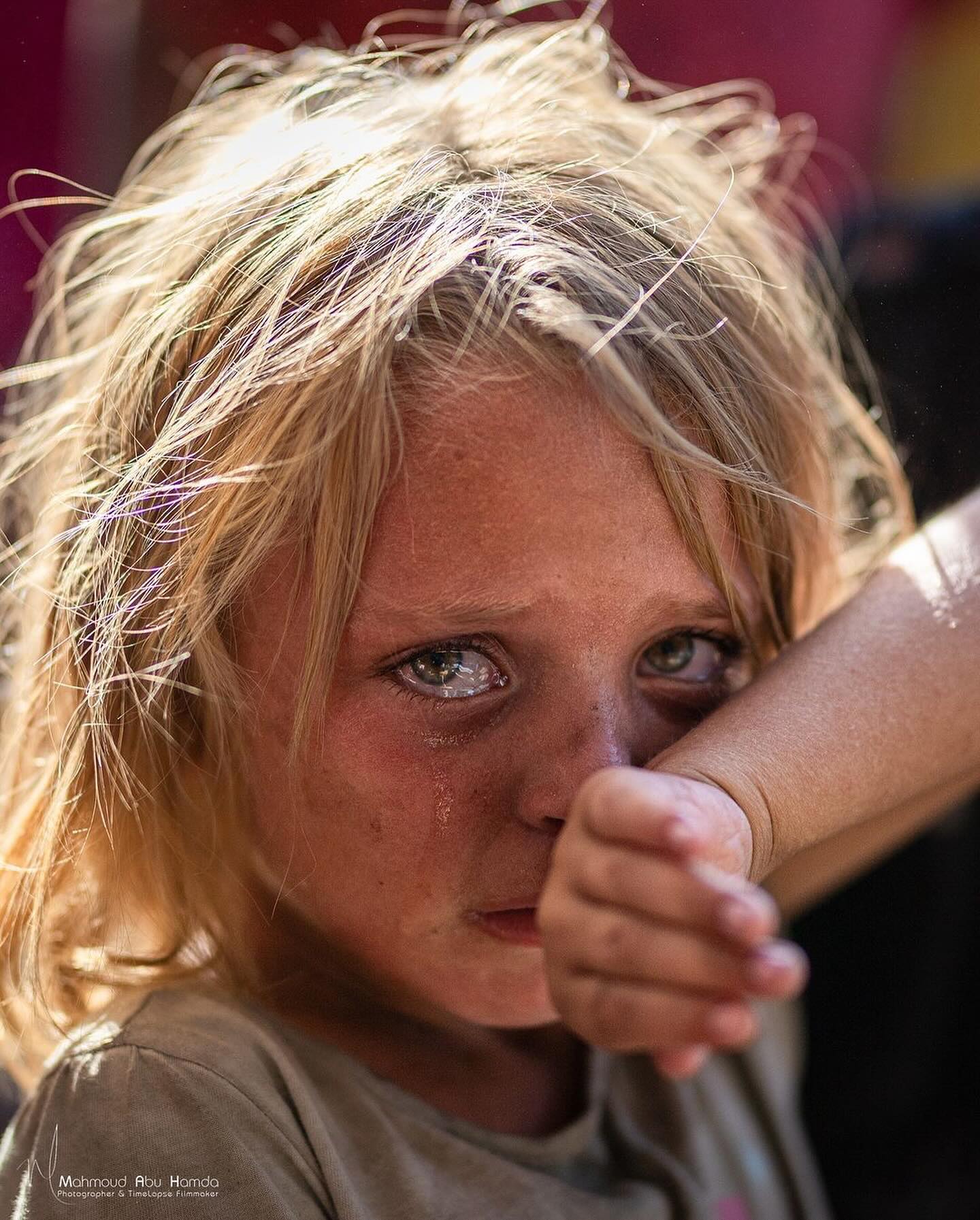 A little girl crying bitterly because of the intense crowding to get a piece of pizza at one of the food charity kitchens in Khan Younis. By @mahmoudhamda طفلة تبكي بحرقة نتيجة الازدحام للحصول على قطعة بيتزا من احدى تكيات الطعام في خانيونس.