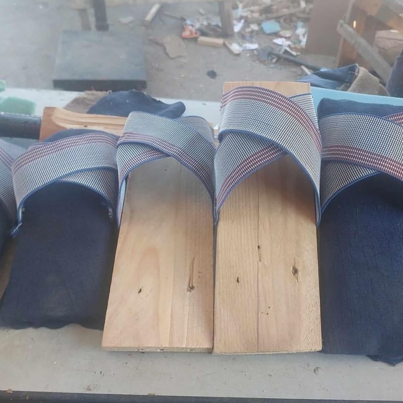 Wooden slippers made by Palestinians in Gaza due to the blockade of Gaza where nothing is allowed in by the occupation to enter the strip. أحذية خشبية يصنعها المواطنون في قطاع غزة نتيجة الحصار و منع الاحتلال من دخول اي شيئ إلى القطاع