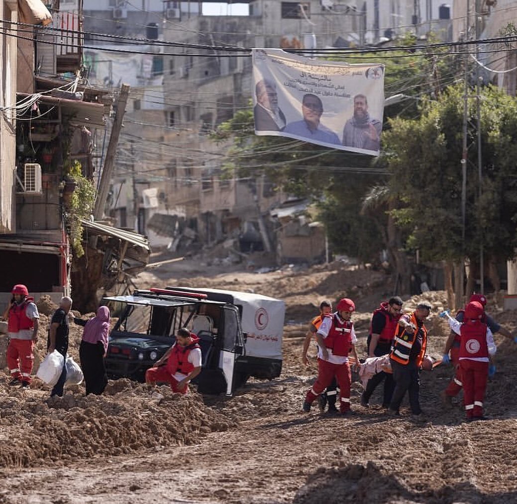 From around Al-Shifa Hospital this morning, a Red Crescent paramedic carries a pile of b0d¥ parts in a small blanket, after it was once a whole human, t0rn apart by the occupation! The horror of this scene cannot be conveyed by any pictures, nor can it be described by any words. من محيط مستشفى الشفاء هذا الصباح، يحمل مسعف الهلال الأحمر كومة أ/ش/لا.ء في بطانية صغيرة، بعد أن كانت إنساناً كاملاً فتته الاحتلال! رعب المشهد هنا لا تنقله أي صور ولا تصفه أي كلمات. . . #untilwhen #إلى_متى