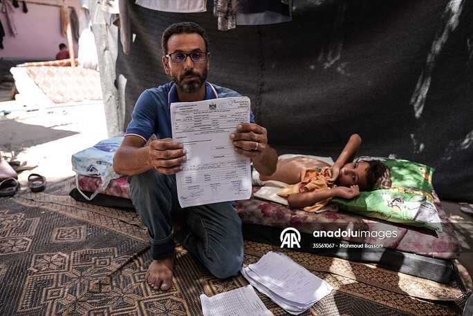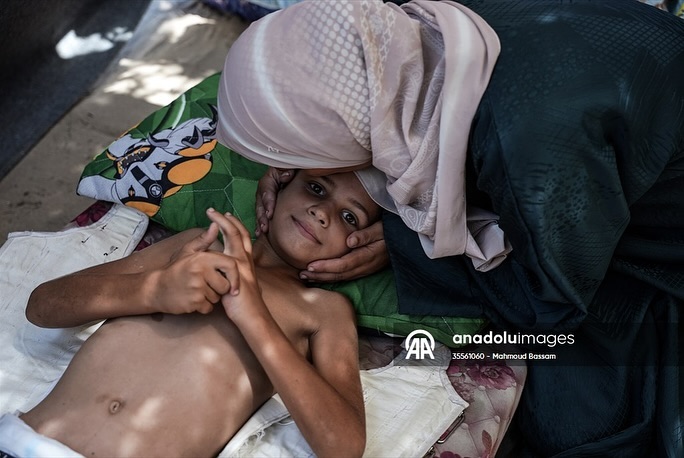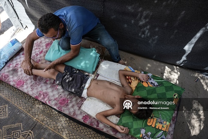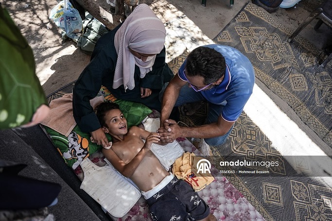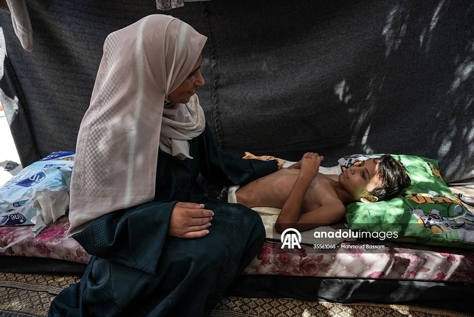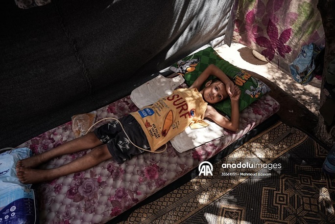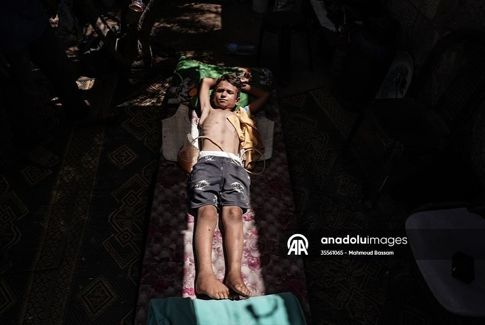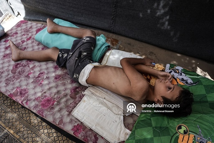 After having dreams like any child in the world, while waiting for his polio vaccine, the child Qais Abu Al-Qumsan became physically disabled after being shot in the spine by a drone while in his tent west of the Al-Nuseirat refugee camp. بعد أن كانت له أحلامه كأي طفلٍ بالعالم، وفي ظل انتظاره لتطعيم شلل الأطفال ؛ الطفل قيس أبو القمصان أصبح معاقاً حركياً، بعد إصابته بطلقٍ ناري في عموده الفقري من قبل طائرة بدون طيار أثناء وجوده في خيمته غرب مخيم النصيرات للاجئين By mahmoudbassam8 @anadoluajansi