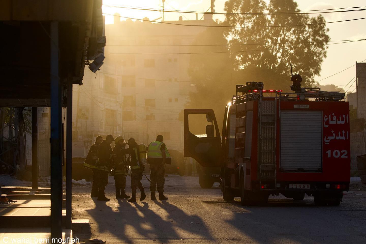 The occupation forces destroy the Palestinian owned vehicles, municipality and electricity company trucks in Jenin city. قوات الاحتلال تمر سيارات المواطنين و مركبات تابعة للبلدية و شركة الكهرباء في جنين
