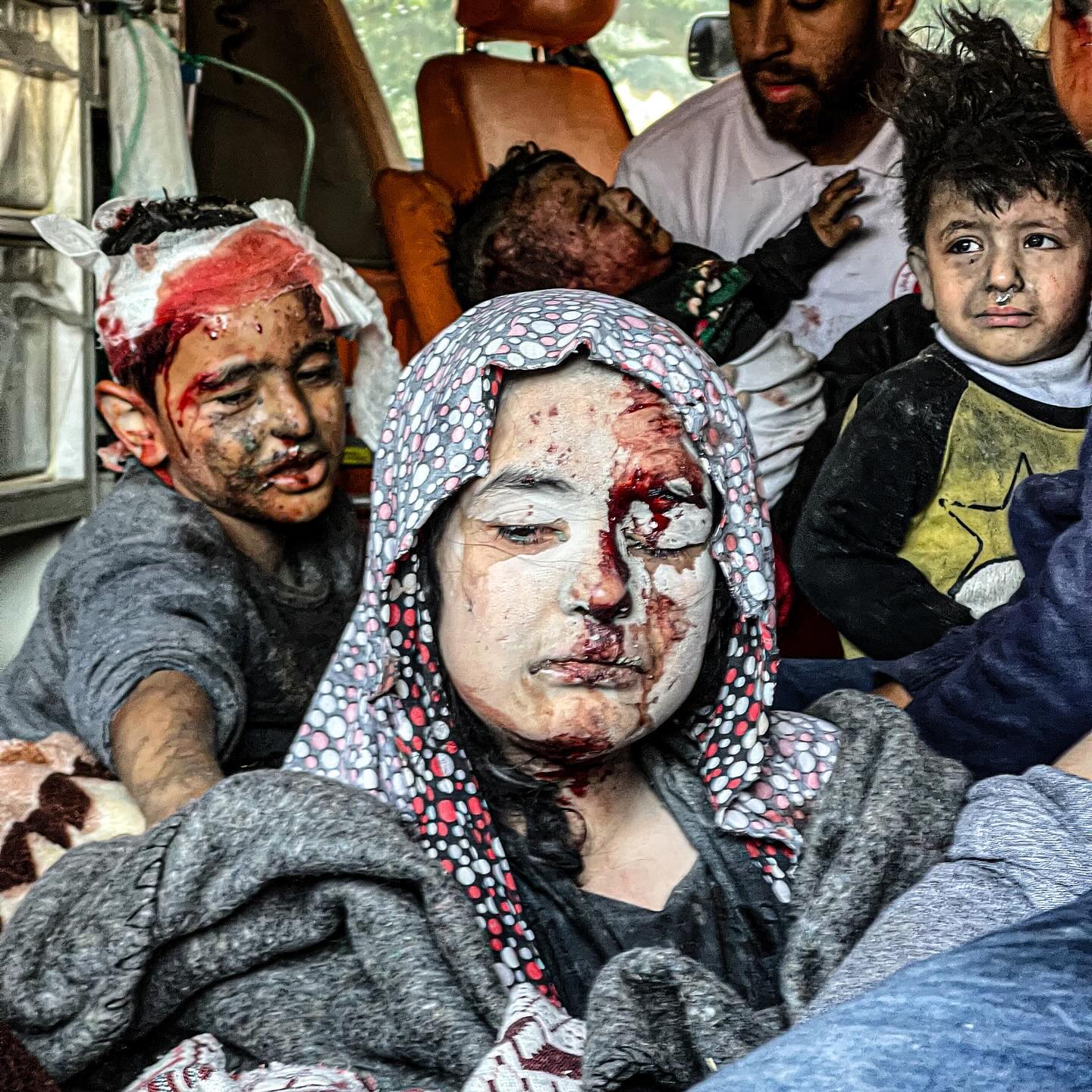 A little girl was injured among others after the tents of displaced Palestinians were bombed in the courtyards of Al Aqsa hospital. By @abdallah_alattar1999